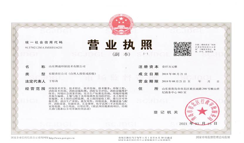 山東博通環(huán)保技術(shù)有限公司是一家專業(yè)從事環(huán)保、安全、消防的多元化技術(shù)服務(wù)公司,公司致力于打造專業(yè)的技術(shù)服務(wù)團(tuán)隊,立足青島,輻射山東,服務(wù)范圍涵蓋:環(huán)保技術(shù)開發(fā)、技術(shù)轉(zhuǎn)讓、技術(shù)咨詢、技術(shù)服務(wù);環(huán)保工程;消防技術(shù)咨詢;消防設(shè)施檢測;消防安全評估;消防設(shè)施維護(hù)保養(yǎng);環(huán)境應(yīng)急預(yù)案咨詢;安全生產(chǎn)標(biāo)準(zhǔn)化咨詢;場地環(huán)境調(diào)查報告編制,土壤與地下水環(huán)境調(diào)查及風(fēng)險評估,水土保持方案編制,水土保持過程監(jiān)測,水土保持驗(yàn)收工程,排污許可申報代理,清潔生產(chǎn)審核;批發(fā)零售:環(huán)保設(shè)備、機(jī)械設(shè)備與配件、消防設(shè)備、儀器儀表、五金建材、化學(xué)試劑(不含危險品)。公司具有“建設(shè)手續(xù)一站式辦理,安環(huán)問題一條龍解決”的獨(dú)特優(yōu)勢,可為客戶提供高效、優(yōu)質(zhì)的安全、環(huán)保、消防管家技術(shù)服務(wù)。